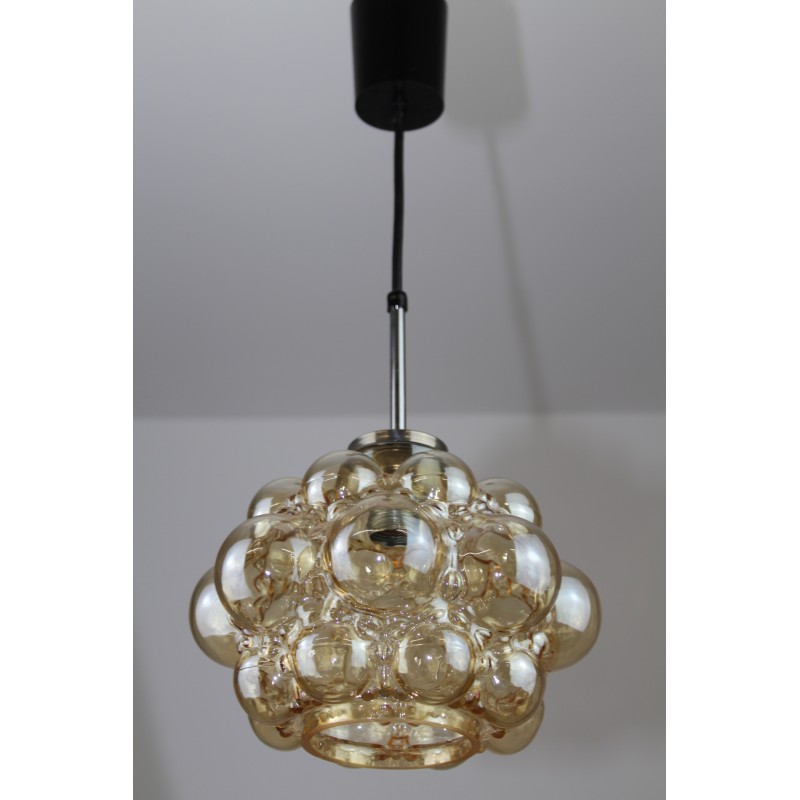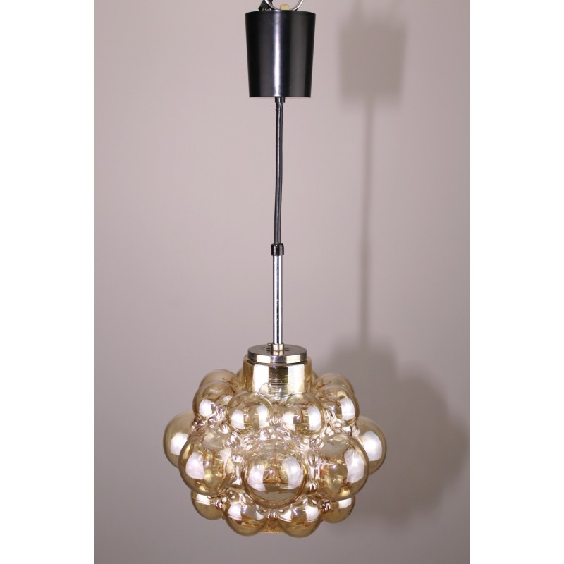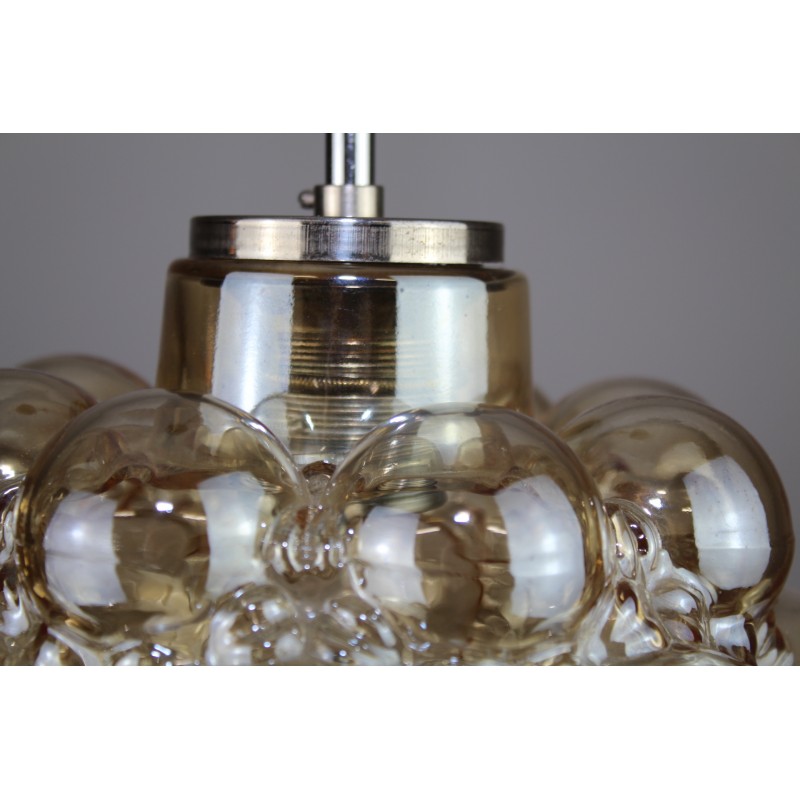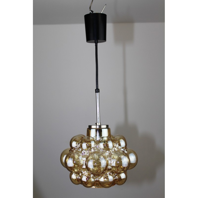 Glaspende um 1960, goldfarbiges Glas, 1 x E27, DM 25cm, H 50 cm